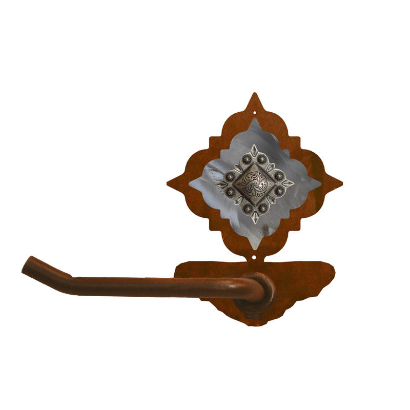 Discover the Diamond Silver Pico Concho Tissue Holder from Ironwood Industries - a stunning addition to your bathroom decor. Measuring 10x8x4 inches and weighing 1.5 pounds, this tissue holder adds a touch of luxury to your space. Keep your tissues stylishly organized with this exquisite piece.