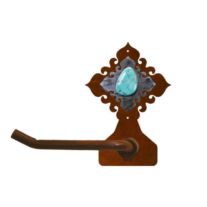Elevate your bathroom decor with the Turquoise Stone Burnished Tissue Holder from Ironwood Industries. With dimensions of 10x8x4 inches and a weight of 1.5 pounds, this tissue holder combines rustic charm with a touch of elegance. Add a pop of color to your bathroom with this stunning accessory.