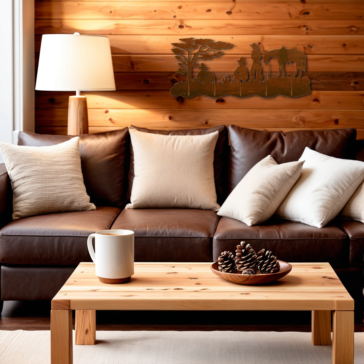 Immerse yourself in the Wild West with the Cowboy Camp Scenic Five Hook. This 36x14x3-inch, 9.5-pound masterpiece blends art and functionality seamlessly. Keep your space organized while embracing Western flair with this unique hook.