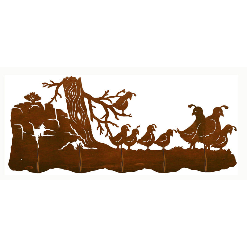 Embrace the beauty of nature with the Quail Family Scenic Five Hook. This 36x14x3-inch, 9.5-pound masterpiece adds a touch of the outdoors to your space while keeping it organized. Elevate your decor and functionality with this unique hook.