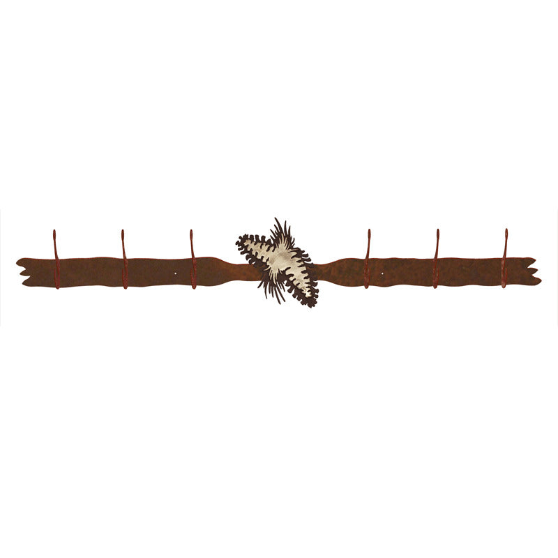 Elevate your space with the Pine Cone Six Hook Burnished. Measuring 40.5 inches by 7 inches by 3 inches, this finely crafted piece combines the rustic charm of pine cones with a burnished finish for added elegance. Its six hooks offer practicality while serving as a striking decorative element. Welcome nature into your home with Ironwood Industries.