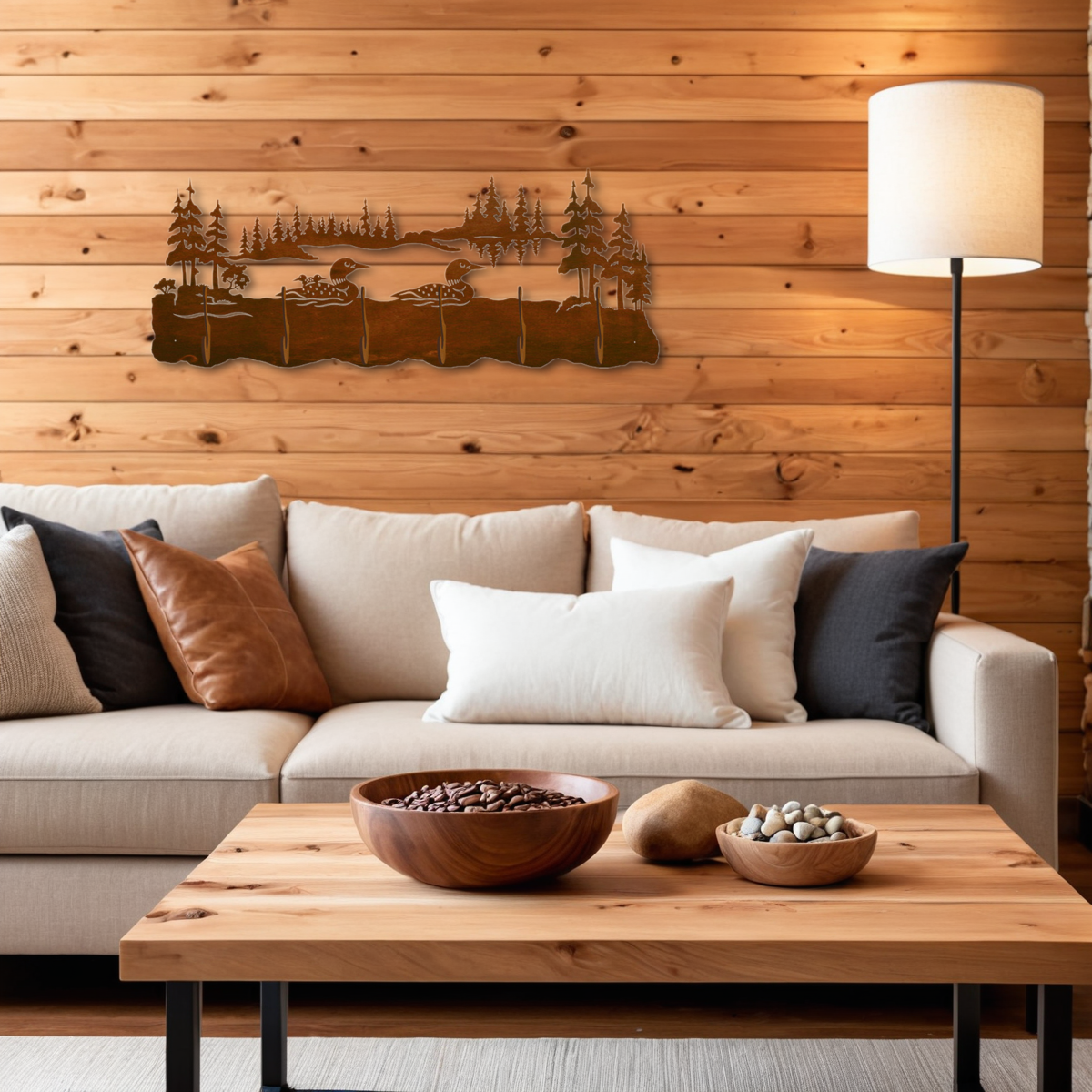 Embrace the tranquility of the outdoors with our Loon Family Scenic Six Hook. At 42x16x3 inches and 13 pounds, it's a charming addition to your home decor, providing both organization and a serene ambiance.