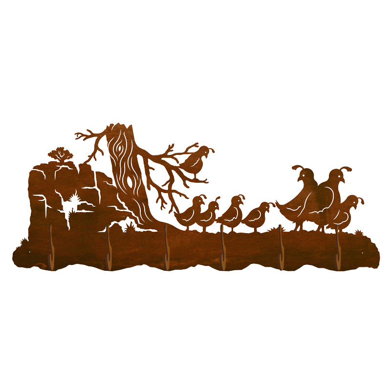Capture the essence of the great outdoors with our Quail Family Scenic Six Hook. Sized at 42x16x3 inches and weighing 13 pounds, it's a decorative and practical addition to your home, inspired by nature's beauty.