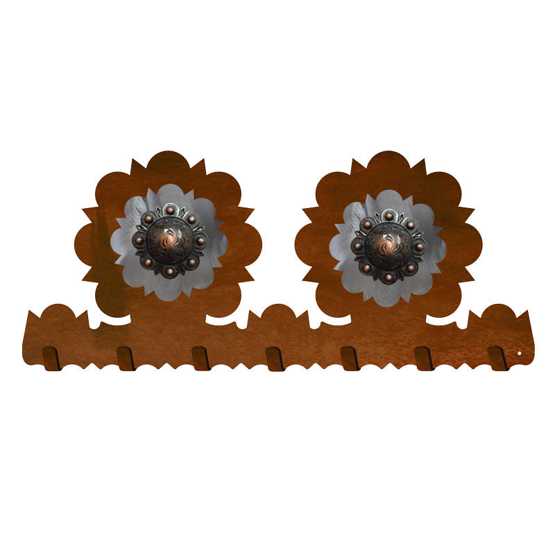 Elevate your key organization with the Copper Round Concho Key Chain Holder. This 16x8x1 inch holder features a meticulously burnished design, adding a touch of elegance to your space. With a weight of 2 pounds, it's both practical and decorative.