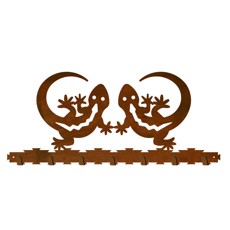 Invite the spirit of the desert into your space with the Gecko Key Chain Holder. Measuring 16x8x1 inches, this holder boasts a beautifully burnished pattern, adding a touch of Southwest charm to your decor. With a 2-pound weight, it's both robust and visually appealing.