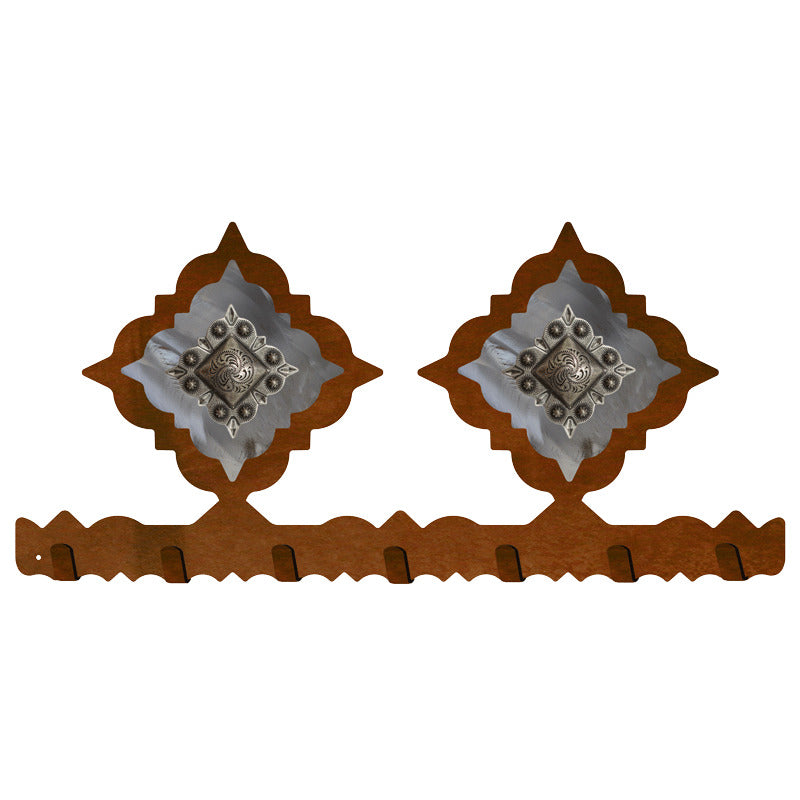Embrace the allure of the Southwest with the Silver Diamond Concho Key Chain Holder. Measuring 16x8x1 inches, this holder features a beautifully burnished pattern, adding a touch of desert elegance to your decor. With a 2-pound weight, it's both robust and visually appealing.