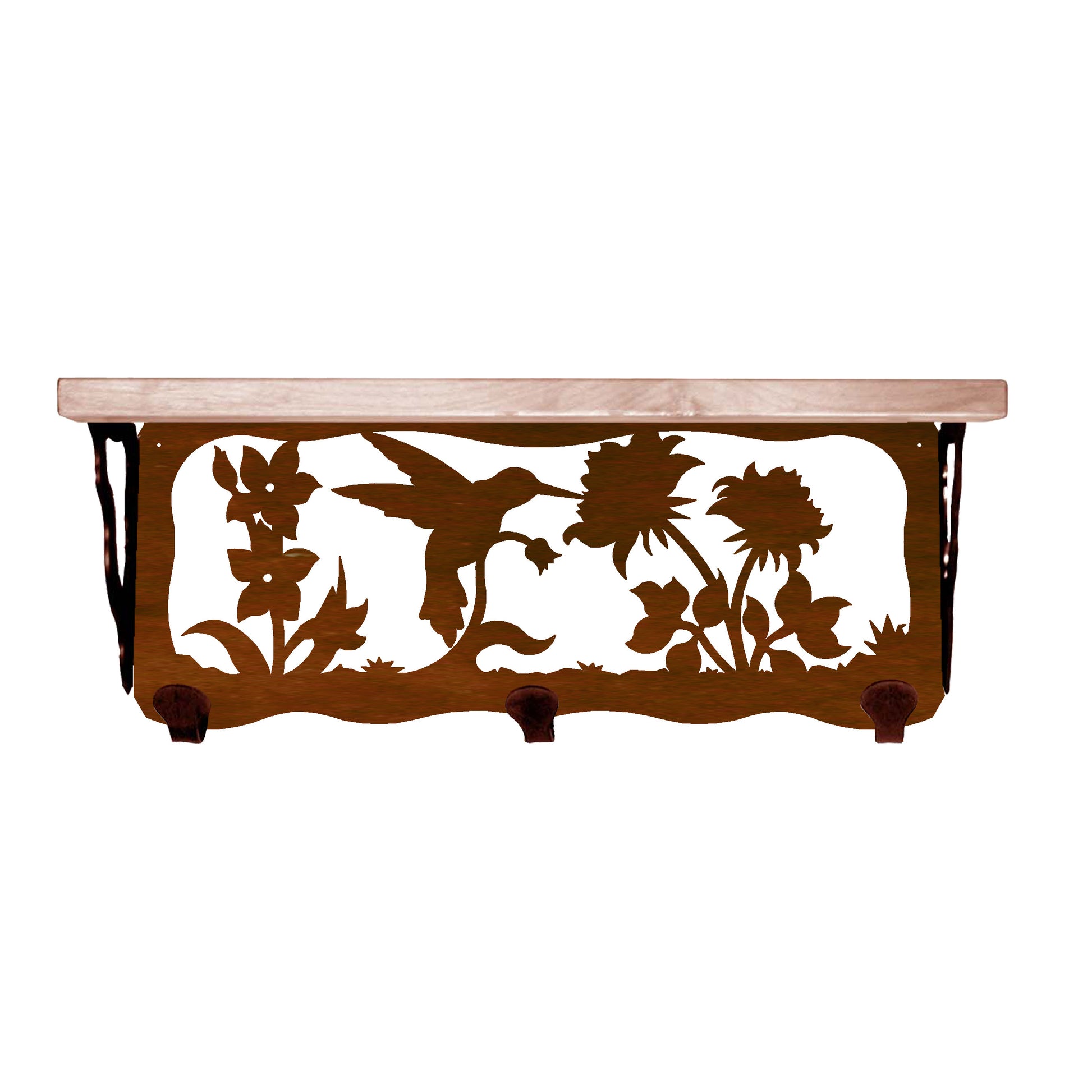 Experience the grace of nature with the Hummingbird 20" Hook Shelf from Ironwood Industries. This elegant piece blends artistry and functionality, making it a delightful addition to any room.