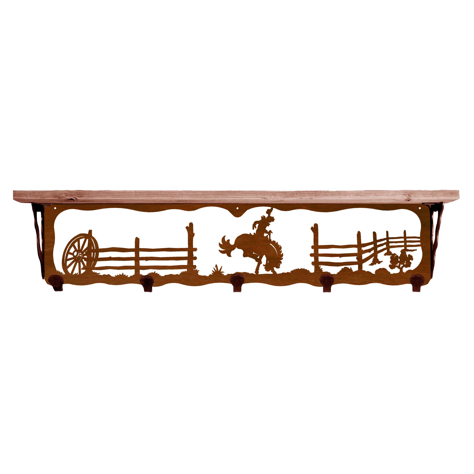 Saddle up your home decor with the Bronc 34" Hook Shelf. This meticulously crafted piece captures the spirit of rodeo bronc riding. Its sturdy hooks and ample shelf space provide both functionality and style. Whether you're a rodeo fan or simply love the Wild West aesthetic, the Bronc shelf adds a touch of excitement to your decor. Elevate your interior with Ironwood Industries.