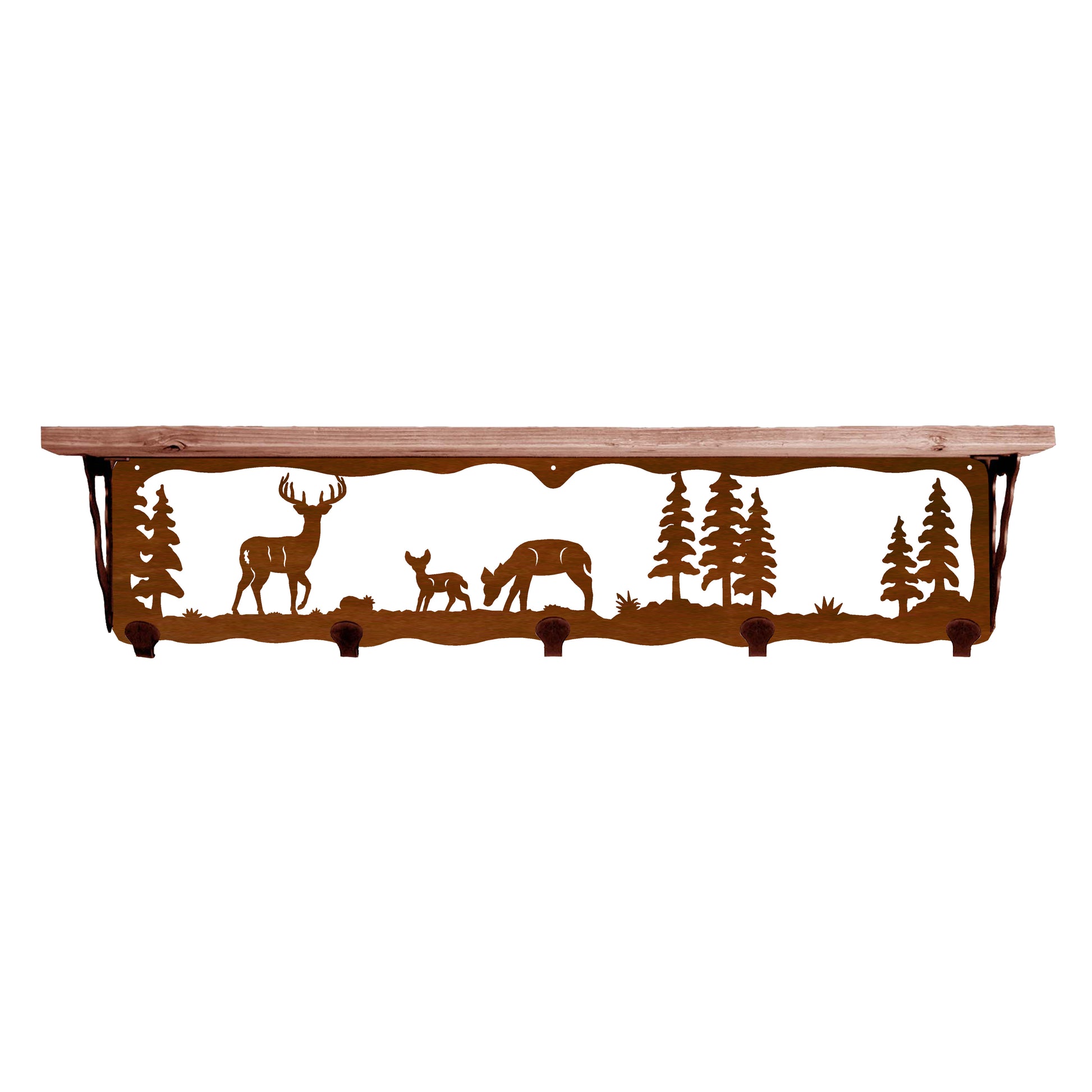 Bring the beauty of nature into your home with our Deer Family 34" Hook Shelf, a functional and artful piece for any space.