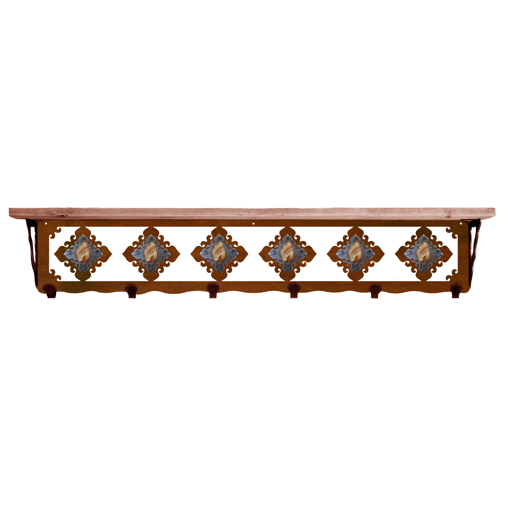 Introducing the Picture Jasper Stone 42" Hook Shelf by Ironwood Industries. This exquisite shelf not only offers practical storage but also brings the natural beauty of jasper stone into your home. The rich, earthy tones of the jasper stone blend seamlessly with its functional hooks, making it an ideal addition to rustic and eclectic interiors. Elevate your decor with this one-of-a-kind piece that exudes both artistry and utility.