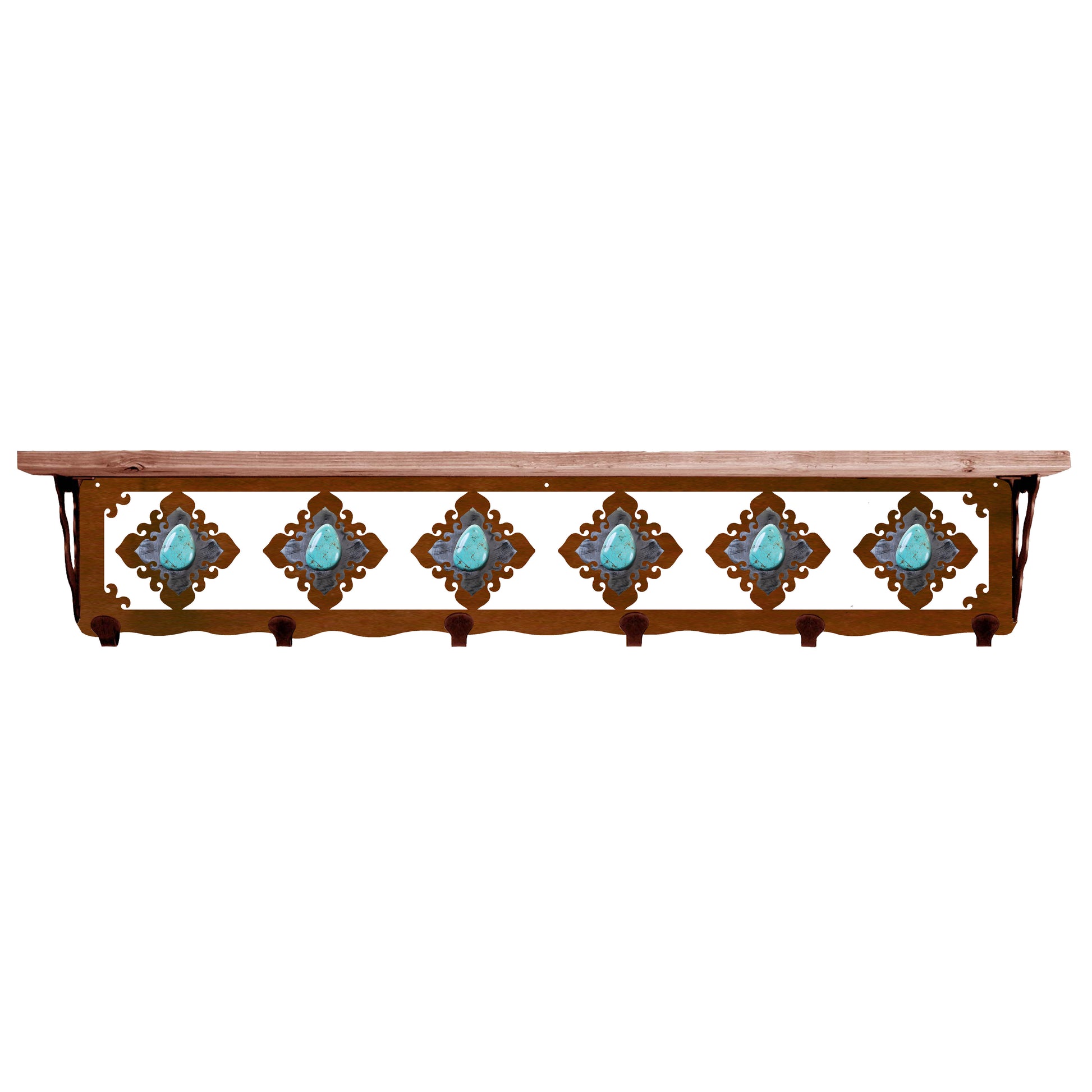 Transform your home into a desert oasis with the Turquoise Stone 42" Hook Shelf by Ironwood Industries. The mesmerizing turquoise stone accents make this shelf a true work of art. Its 42-inch length provides ample room for your decorative pieces or daily essentials, while the functional hooks add convenience and style. Embrace the Southwest-inspired charm and infuse your space with the calming vibes of turquoise.