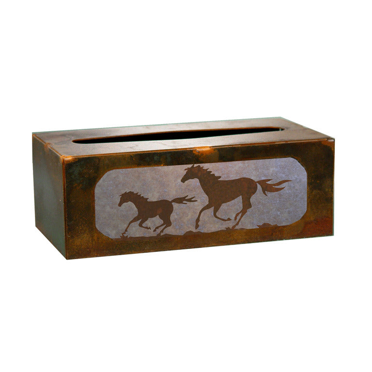 Gallop into the wild west with the Wild Horse Rectangle Tissue Box Cover. This tissue cover showcases a dynamic wild horse design, making it a perfect addition to Western-themed decor. Keep your tissues organized while celebrating the spirit and freedom of these majestic creatures with this distinctive cover.