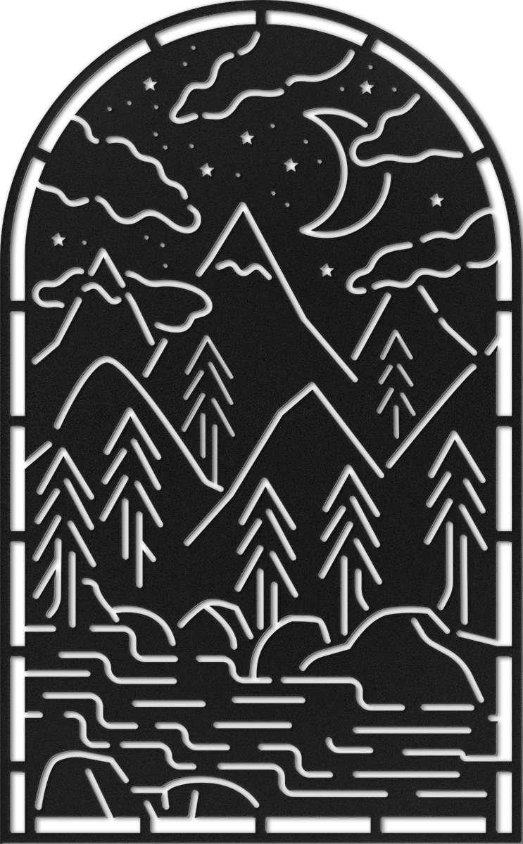 Immerse yourself in the serenity of nature with our Night Mountain Window Arch Wall Art, a visual masterpiece.