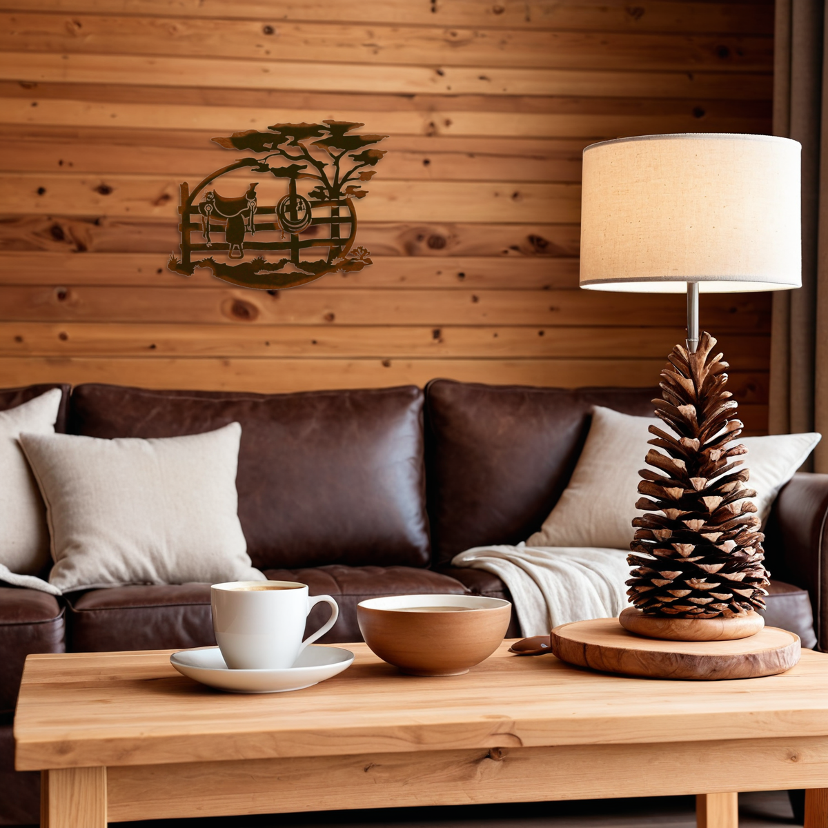 Elevate your rustic decor with the Saddle/Fence 26" Oval Wall Art, a captivating piece measuring 26x19 inches and weighing just 3 pounds. This Ironwood Industries creation adds a touch of wilderness to your space.