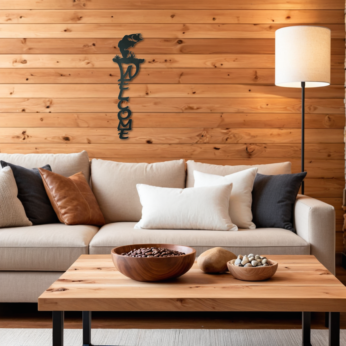 Welcome your guests in style with the Bass Vertical Welcome Signtical. Measuring 28x9 inches and weighing 1.5 lbs, this sign is the perfect blend of elegance and durability. Crafted by Ironwood Industries, it features a stunning design that adds a rustic touch to your home's entrance. Elevate your decor with this handcrafted masterpiece.