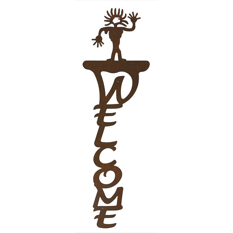 Welcome guests with a touch of Southwestern flair with our Sunhead Man Welcome Sign. This vertical sign, measuring 28x9 inches and weighing only 1.5 pounds, is a stunning piece by Ironwood Industries that radiates warmth and hospitality.