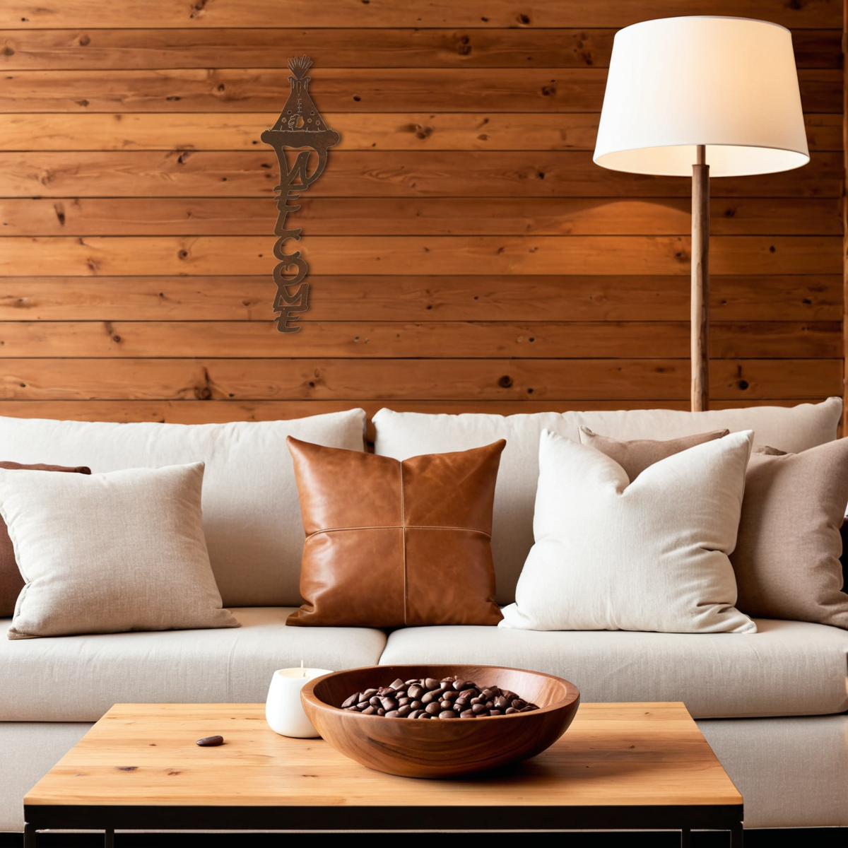 Embrace Native American culture with our Tepee Welcome Sign. This vertical sign, measuring 28x9 inches and weighing only 1.5 pounds, is a respectful tribute crafted by Ironwood Industries. It's a unique way to greet your guests with cultural richness.